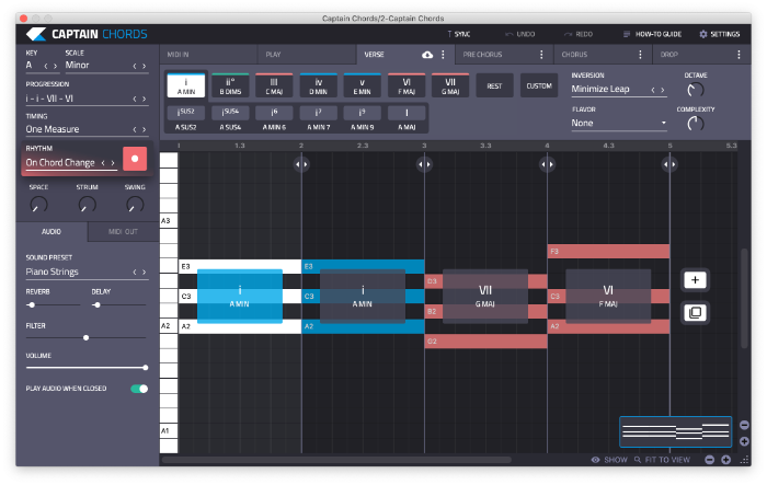 Usar Captain Chords para crear una progresión de acordes y grabarla con un instrumento real
