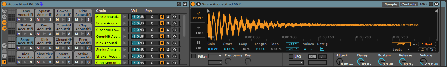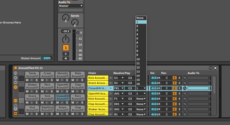¿Para qué es útil esto? pues para añadir un poco de realismo en algunos casos. Por ejemplo, en el mundo real, no puedes escuchar un hi-hat abierto y cerrado al mismo tiempo. Entonces, si quieres imitar este comportamiento en un drum rack, puedes añadir al mismo grupo los dos sonidos de forma que en cuanto suene un hi-hat cerrado, el sonido del abierto se corte. También puede ser útil simplemente para ajustar relaciones entre sonidos de forma creativa.