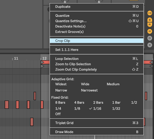 Para ello pulsamos con el botón derecho del ratón sobre las zonas de las notas del editor MIDI y seleccionamos "Crop clip"