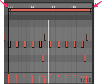 Vemos en la imagen seleccionada la parte que Ableton considera que cuadra con el tempo en el que estábamos, junto a lo que habíamos tocado antes. Normalmente detecta bastante bien lo que queríamos hacer, pero aquí van algunos consejos sobre su uso.