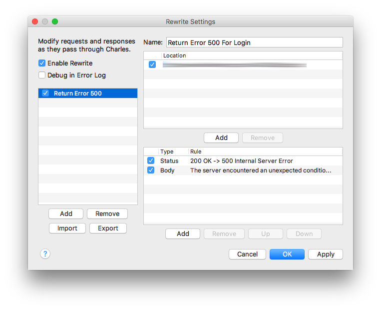 En el caso de los tests hay herramientas muy útiles como la librería OHHTTPStubs pero en otros casos necesitamos ver la comunicación y a veces devolver o modificar cabeceras para forzar alguna prueba. En este artículo voy a explicar como modificar la respuesta de una llamada a un API para forzar que se devuelva un error 500 usando Charles, una navaja suiza para interceptar tráfico web.