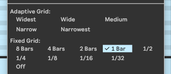Tenemos que establecer la unidad mínima del grid de acuerdo a cuanto queremos que dure cada nota. Para ello pulsamos con el botónderecho del ratón sobre el grid del clip MIDI y seleccionamos la unidad.