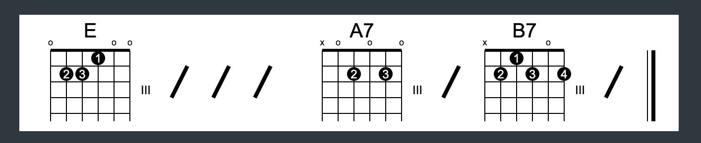 ```Es decir, para la cuerda $1, no suena (x), para la $2, traste 2... y asi sucesivamente hasta la sexta cuerda. Esto renderizaría lo siguiente: