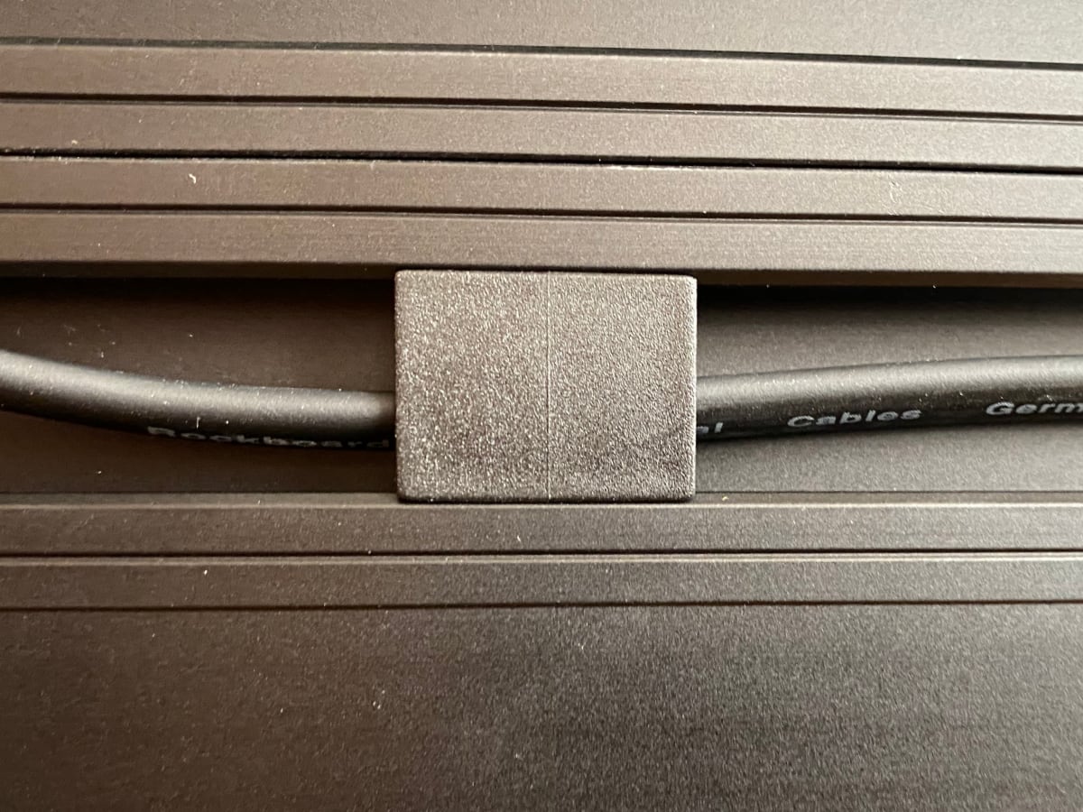 Además de los pedales y la pedalera, necesitas una fuente de alimentación, cables y algún tipo de guía para ordenar los cables. Esto último se resuelve con unas guías de plástico adaptadas a la pedalera que también ofrecen en Aclam Guitars. Quizás es la parte más endeble porque una de las guías se partió al abrirla para meter el cable, pero sigue siendo funcional.