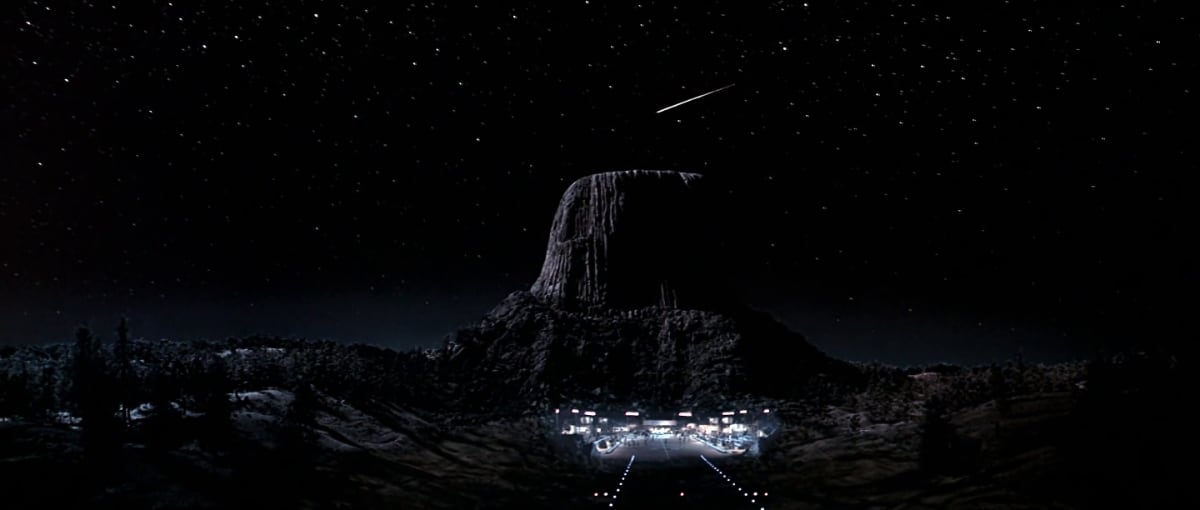El prólogo, una de las muchas marcas de la casa Spielberg, es estupendo, y nos mete de lleno en la atmósfera de una película bastante sombría y desoladora en la que se mencionan eventos reales, como la desaparición del Cotopaxi, con tripulación, en 1925. Roy Neary, interpretado por Richard Dreyfuss, al que ya vimos en Tiburón, se obsesiona con unos objetos voladores que ve una noche, y este avistamiento comienza a alejarlo de su familia. El padre ausente, la familia rota o al borde del fracaso, son temas recurrentes en la filmografía del cineasta. Una imagen, que esculpe en su espuma de afeitar y en el puré de patatas durante la cena familiar, absorbe también la atención y el juicio de Roy, hasta que descubre finalmente que se trata de una montaña, escenario final de la cinta.