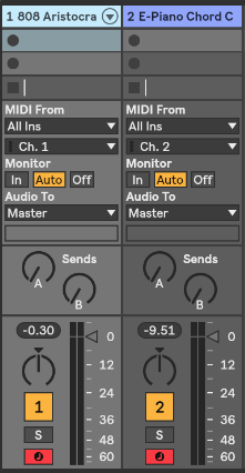 - Creamos un par de tracks MIDI en Ableton con shift + Option + T