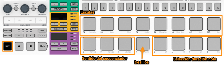 Pulsando en la tecla Shift de BeatStep Pro podemos cambiar algunas opciones generales del secuenciador que nos dan diferentes posibilidades creativas.
