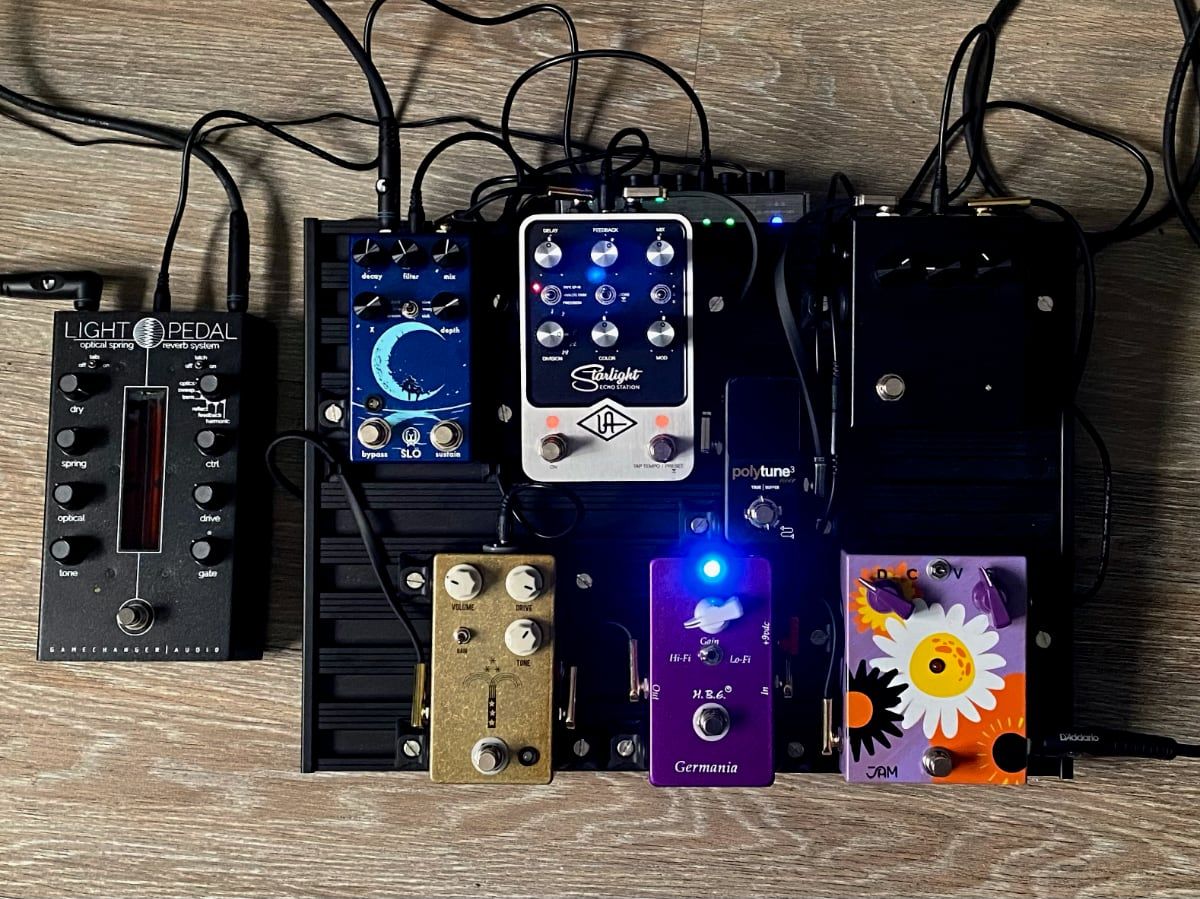Como suelo hacer en estos artículos, vamos a ver como está la pedalera a día de hoy. He cambiado dos pedales en los últimos siete meses además del delay. En primer lugar puse el Retrovibe de Jam Pedals al principio de la cadena y me hice con el Light pedal de GameChanger Audio que ya no entra en la pequeña pedalera. Supongo que hablaré de estos en el futuro.