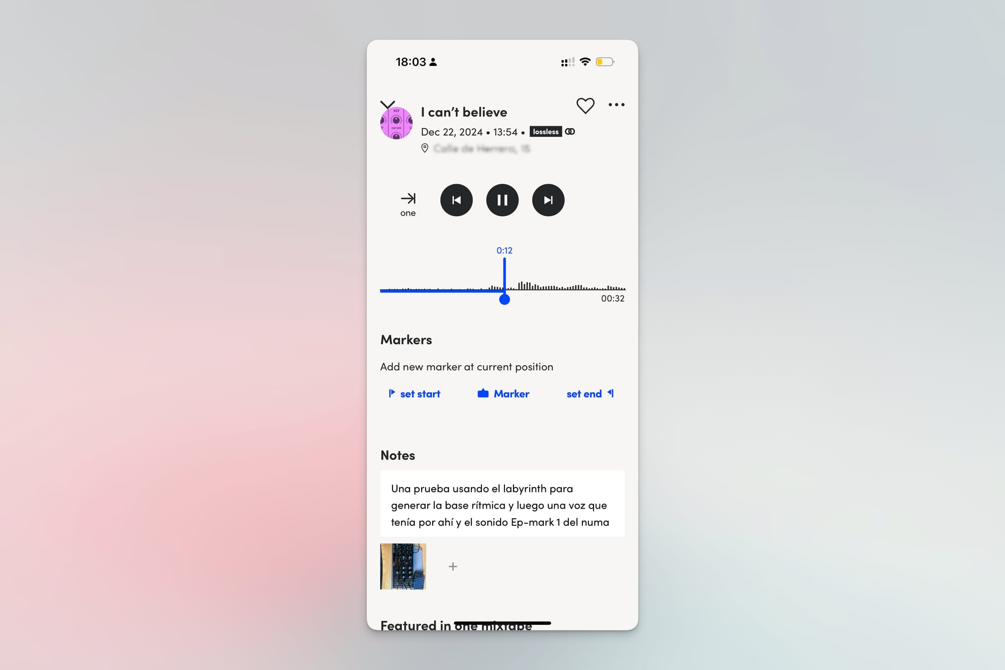 - Geolocaliza las grabaciones. No se me ocurre mucha utilidad para esto excepto si haces grabaciones de campo para samplear. Por cierto que con un buen micrófono externo, es una de las utilidades potenciales de esta app.