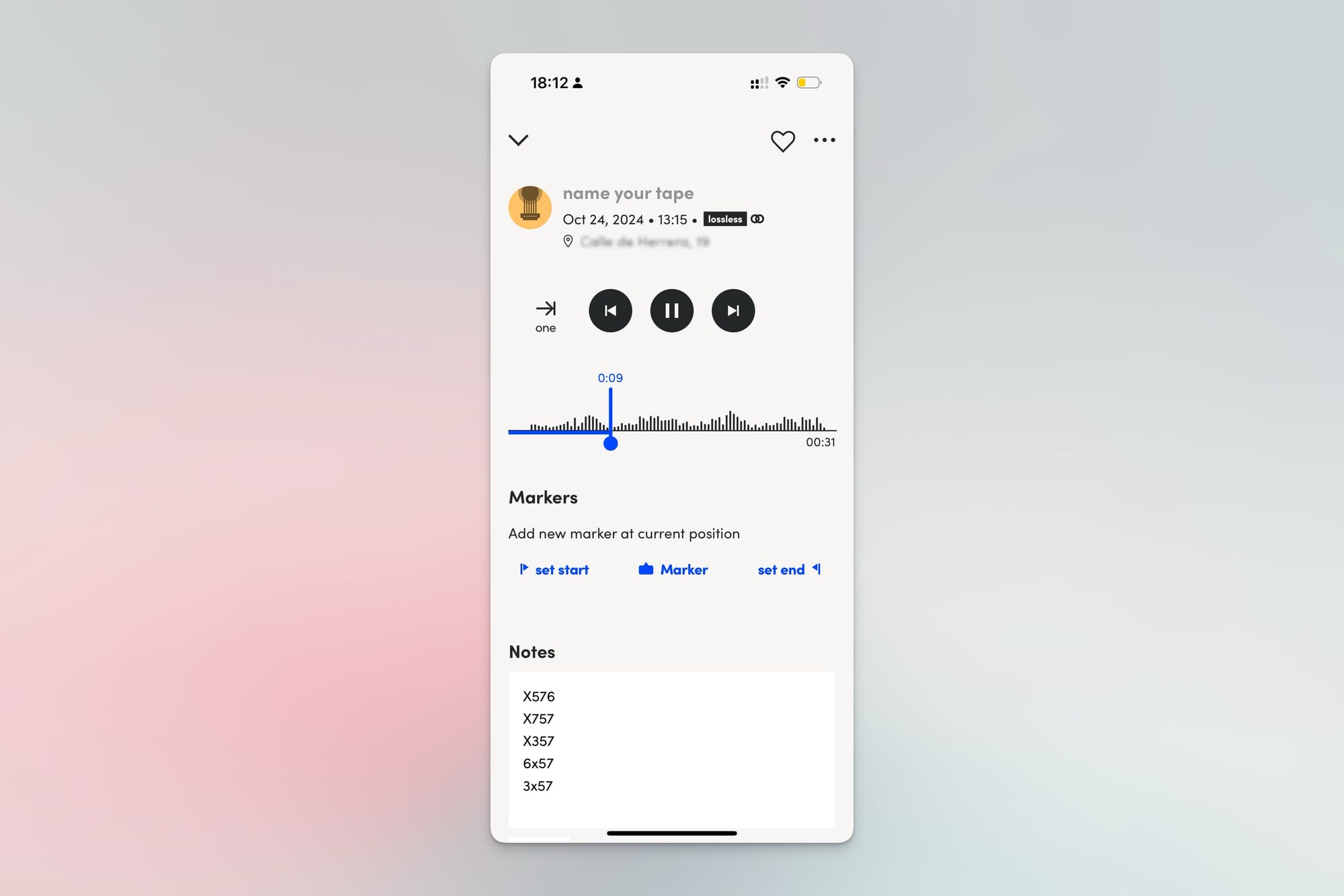 Si llegas a algo interesante puedes apuntar en una nota la secuencia de acordes o la letra y grabar un audio en la app de notas de audio del iPhone... pero con Tape it lo puedes hacer todo en la misma aplicación y queda asociado.