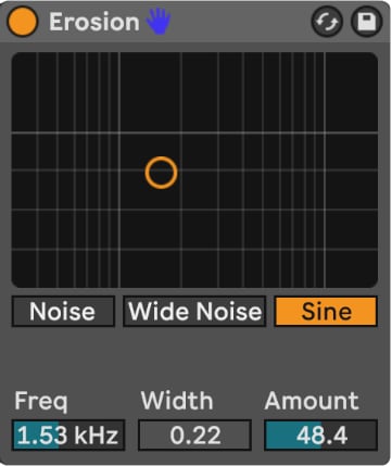 Erosion nos permite generar ruido en una determinada frecuencia. El ruido puede ser mono (noise), con un poco más de amplitud stereo (wide noise) o del tipo sine. Es útil normalmente para marcar una frecuencia y generar una sensación rítmica, pero además genera ese ruido que puede colaborar con la sensación de lo-fi que estamos buscando en este artículo.